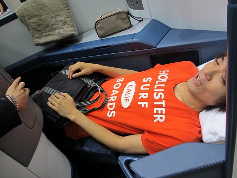 180cmの男が足を伸ばせるデルタ航空ビジネスクラスフラットシート